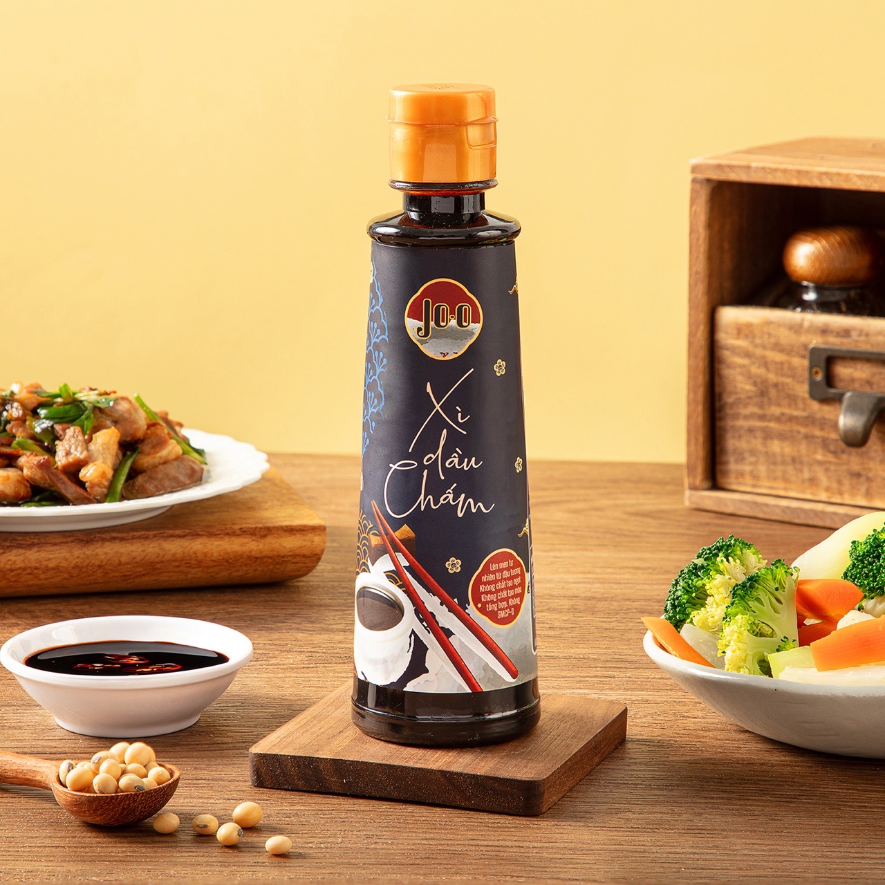 Xì dầu chấm Jo-o lên men tự nhiên từ đậu tương, với 3 KHÔNG: