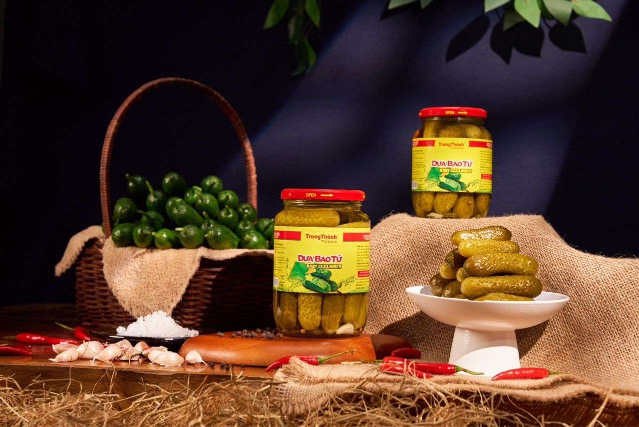 Dưa chuột bao tử đóng lọ được sản xuất theo quy trình khép kín. Những trái dưa chuột từ nông trại TrungThành được chăm sóc và kiểm soát theo tiêu chuẩn của Trung tâm kiểm tra chất lượng (QLCL). Sau khi thu hoạch sẽ được trải qua quá trình chọn lọc, kiểm tra hàm lượng thuốc bảo vệ thưc vật. Những trái dưa phải có màu sắc tươi sáng, đạt chiều dài, đường kính theo quy định và phải còn nguyên vẹn, không sâu bệnh, di dạng mới được đưa vào sản xuất. Tại đây, những trái dưa đạt chuẩn được sơ chế, vệ sinh và thanh trùng cao áp ở nhiệt độ cao đảm bảo giữ được tối đa lượng vitamin tự nhiên. Trên dây chuyền sản xuất hiện đại theo tiêu chuẩn FSSC 22000 version 4.1 và BRC FOOD, mọi quy trình được kiểm soát chặt chẽ từ khâu nguyên liệu cho tới khâu hoàn thiện, cho ra sản phẩm dưa chuột bao tử đóng lọ tươi ngon nhất, đảm bảo vệ sinh an toàn thực phẩm nhất mang đến cho người sử dụng.