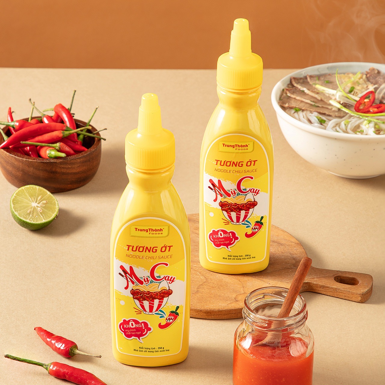 Tương ớt mỳ cay là sự lựa chọn tuyệt vời cho các tín đồ "sành cay" đang tìm kiếm cho mình một vị tương ớt bùng nổ, thăng cấp độ cay. Tương ớt mì cay TrungThành Foods thách thức mọi thánh ăn cay với độ cay nồng đậm sâu, vừa ăn vừa xuýt xoa hít hà nhưng ngon lại không cưỡng lại được.